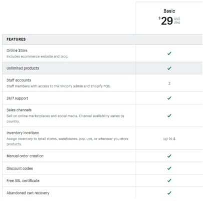 Lite is an inexpensive Shopify subscription plan for only $9 that is good for those who don’t have an online store but still want to sell online. This could be through a blog, social media, a personal website or pop-up shops or markets. You’ll have access to abandoned cart recovery which enables you to alert customers when they’ve left items in their cart without completing their purchase. You will also have access to the overview dashboard where you can monitor your performance as well as obtain finance reports to track your sales and payments.